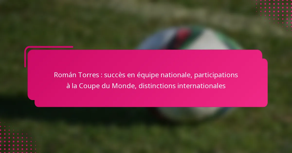 Román Torres a apporté des contributions significatives à l’équipe nationale, mises en avant par son leadership et ses performances marquantes lors de grands tournois. Ses réalisations incluent des participations à la Coupe du Monde et des victoires notables qui ont solidifié son héritage dans le football international.